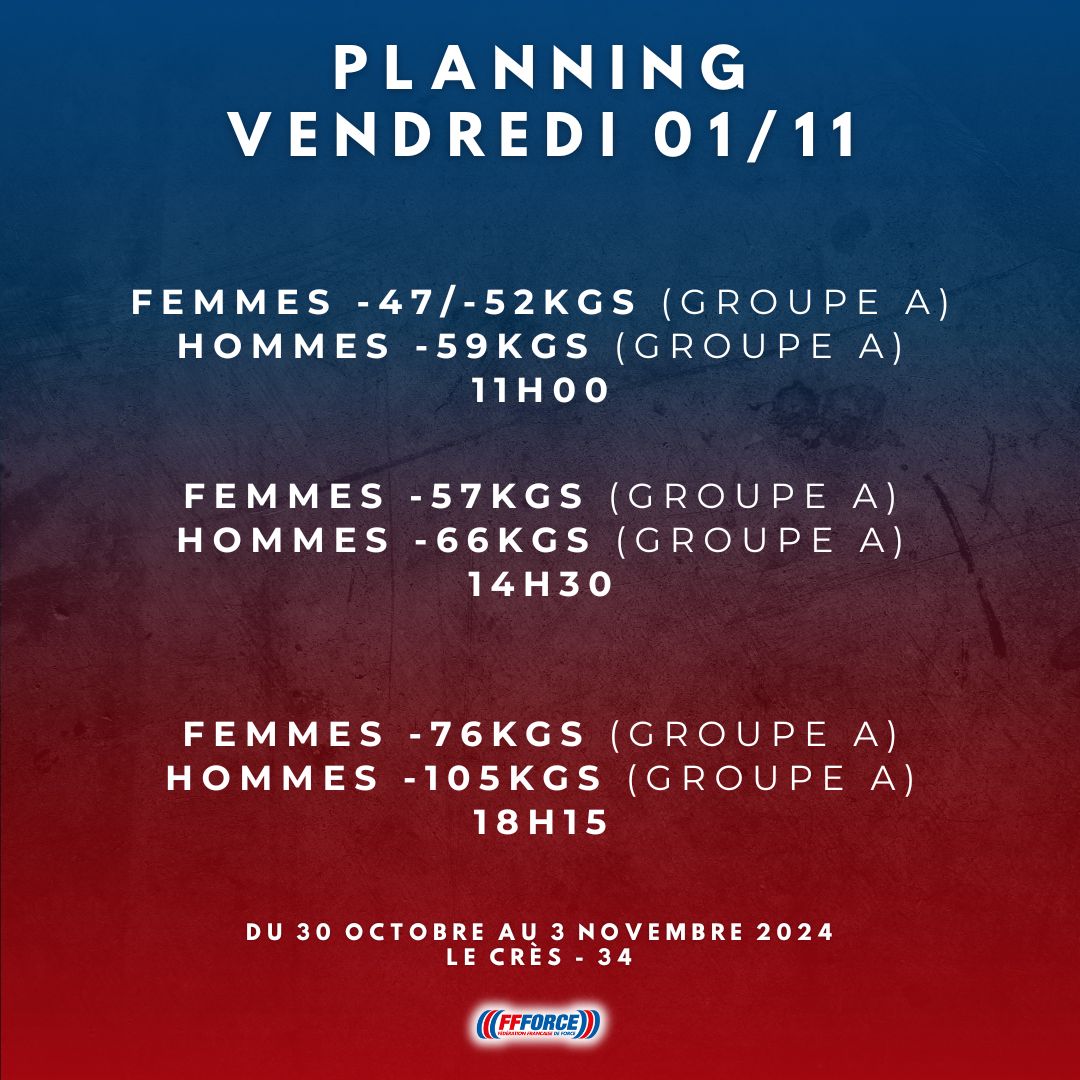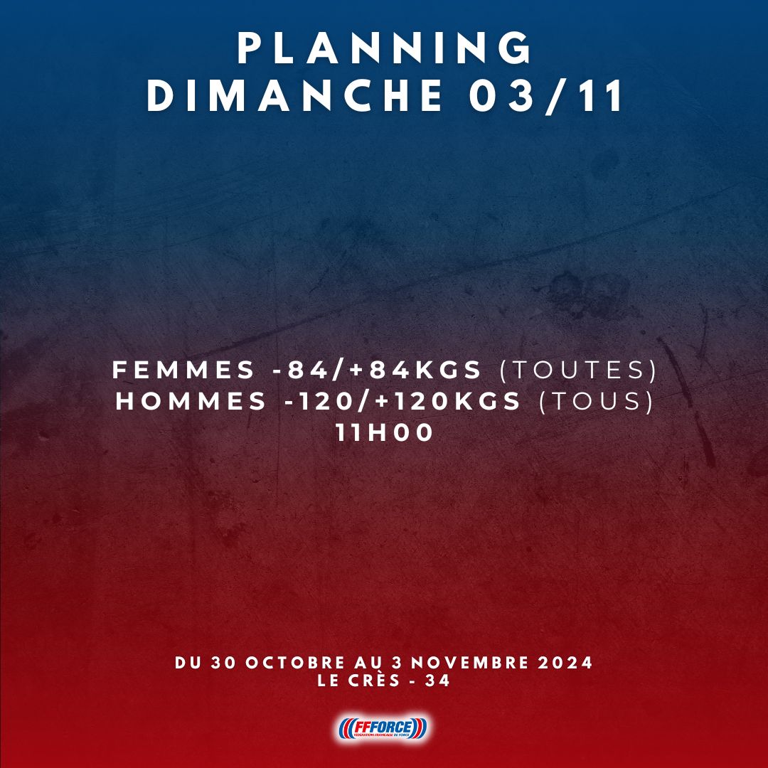 ❗️PLANNING CHAMPIONNATS DE FRANCE OPEN FORCE ATHLÉTIQUE 2024❗️