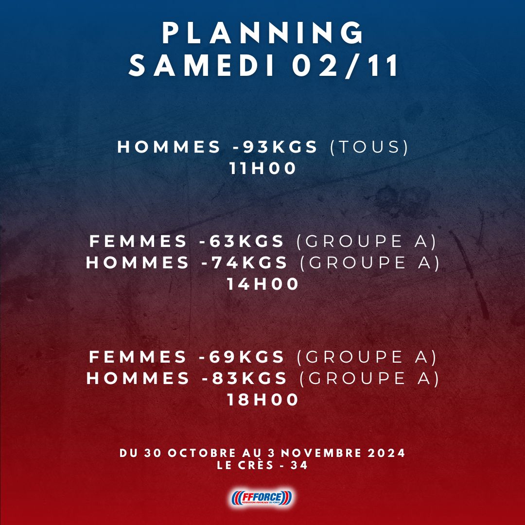 PLANNING CHAMPIONNATS DE FRANCE OPEN FORCE ATHLÉTIQUE 2024