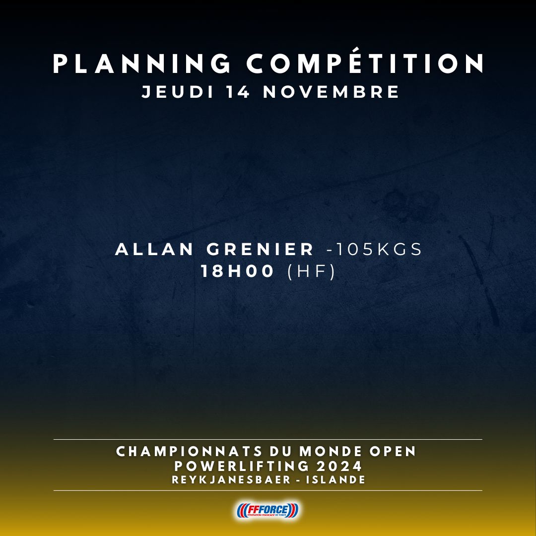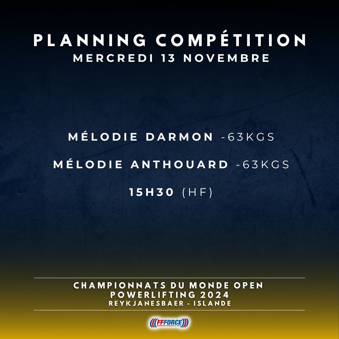❗️PLANNING des championnats du Monde Open de POWERLIFTING 2024