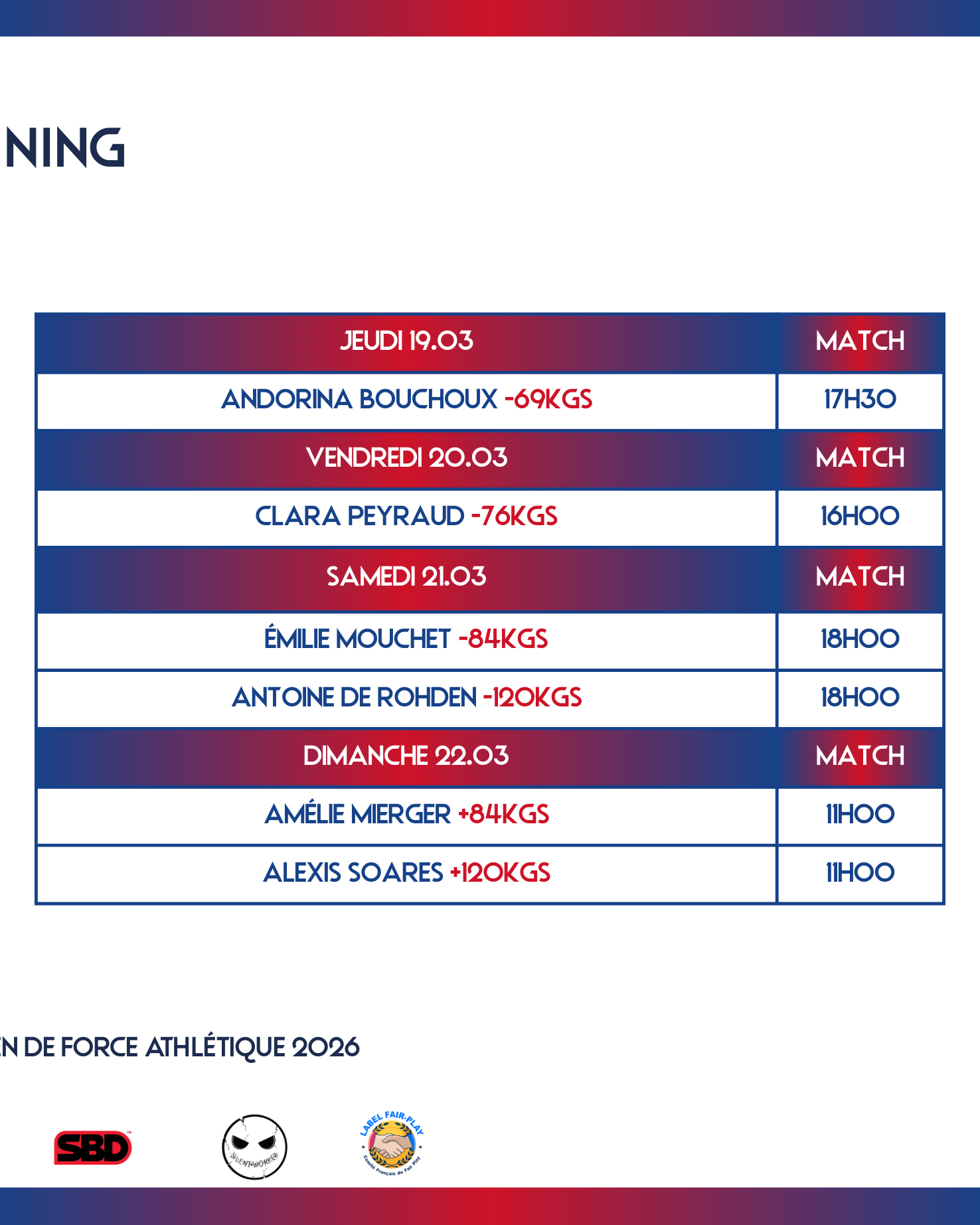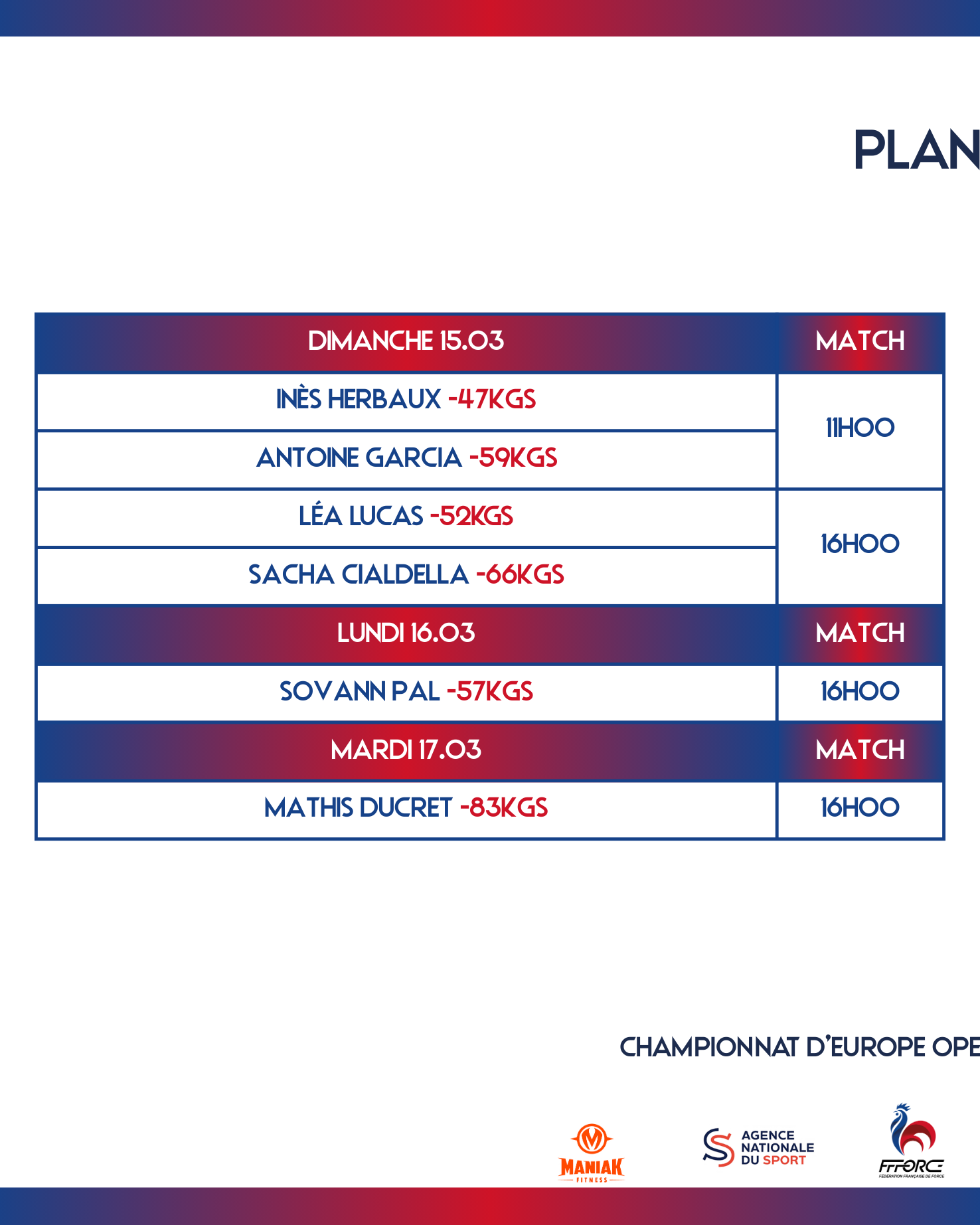 PLANNING CHAMPIONNAT D’EUROPE DE FORCE ATHLÉTIQUE OPEN 2026